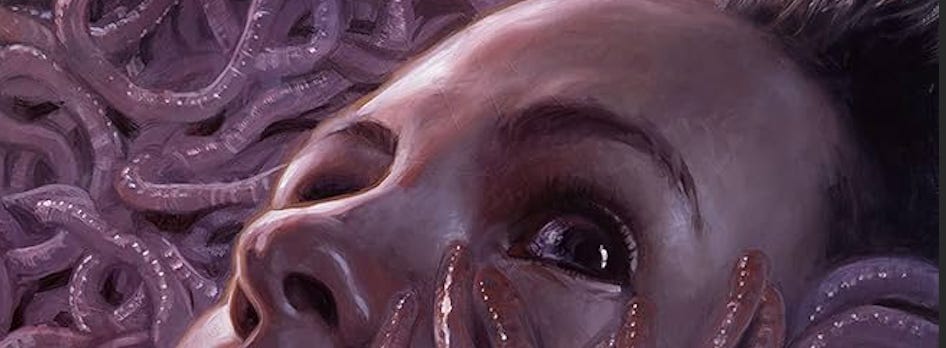 The location of horror is interpersonal, sexual, and familial, so the moments of horror are twinged with feelings that are difficult to grapple with - Disgust. Guilt. Shame. Itchiness. Ineviability. The world of Brainwryms is relatively small, focusing primarily on one relationship between two trans* folks - Vanya, a very young person who wants to be completely dominated by their partner, and Frankie, a post-op trans-woman who is the recent survivor of a bombing at her workplace, a gender identity clinic that provides healthcare to minors. The book’s second half plunges into Vanya’s psyche to unravel the layers of trauma handed down to her by her family, and how much of that trauma lives in her body through her sexuality. A huge part of the book is oriented around being a host. Vanya explores a variety of submissive kink postures, including exploring a sexual interest in having parasites in their body.